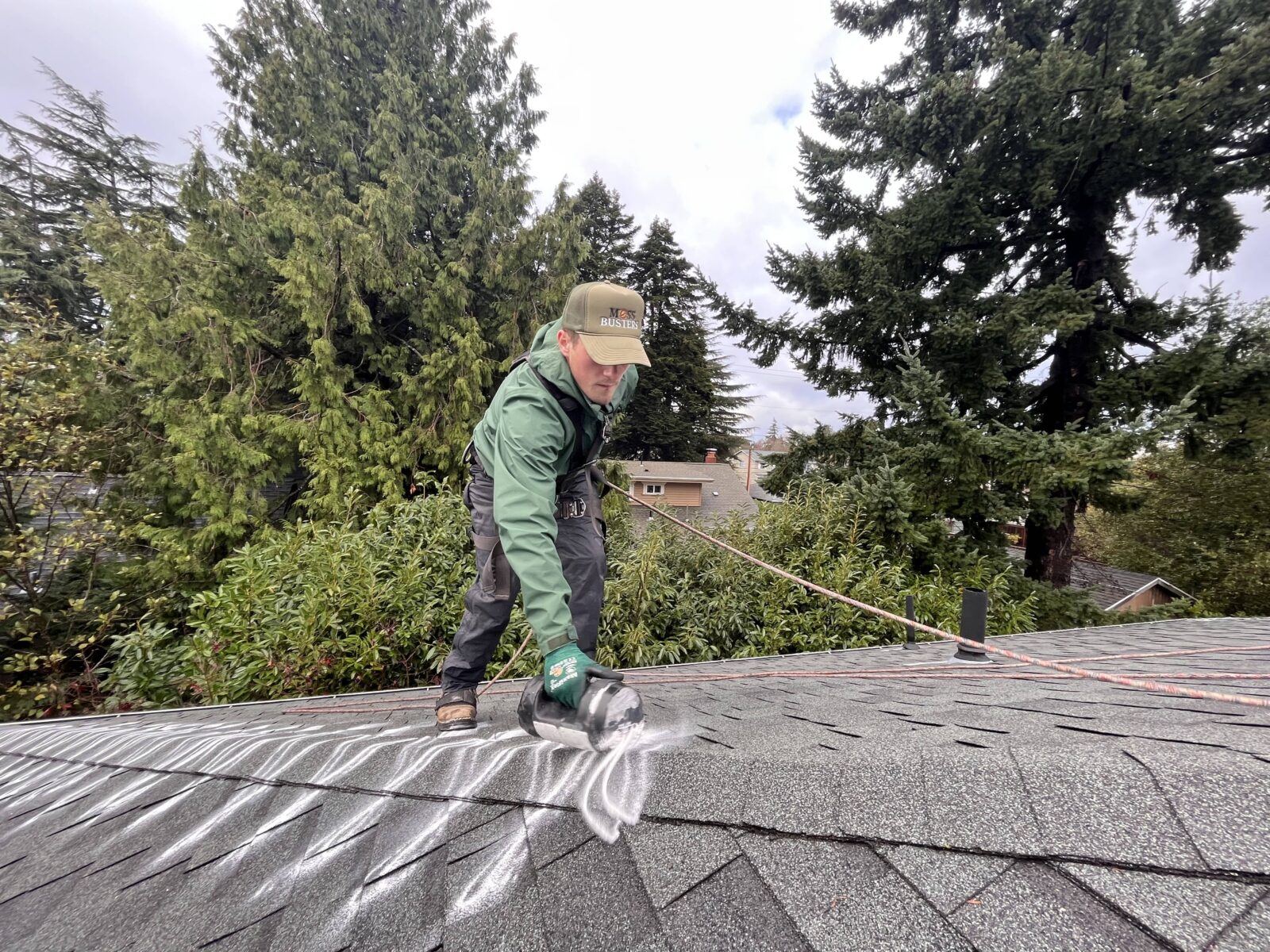 At Moss Busters, safeguarding the longevity of your roof is our priority. We offer a variety of one-time, or recurring treatments, including eco-friendly options to keep that moss growth at bay. We will treat your roof with safe and effective solutions, and keep in mind nearby plants, wildlife, water features, and furniture that may be at risk. Our technicians are trained, and we are licensed by the Oregon Department of Agriculture to provide professional roof treatments.